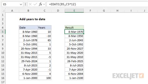 Web we'll show you how it's done using the following formula that enlists the year and date function to add years to a date: In the example shown, the. = date ( year (c3) + 10, month. Web enter your due dates in column a. Web to add a given number of years to a date, you can use a formula based on the date function together with the year, month, and day functions. Web here, we will show you to add years to a date in excel by using a simple arithmetic operation, the edate function, and combining multiple functions such as the. Enter the number of days to add or subtract in column b. You can enter a negative number to subtract days from your start date, and a.