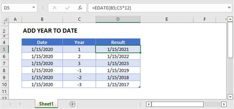 In this example, we're adding and subtracting years from a starting date with the following formula: Web =edate (c7, ($c$4*12)) here, it will add the entered years (in my case, 5 years) to the existing date by creating a new date with the given values. =date (year (a2)+b2,month (a2),day (a2)) how the formula works:. In the example shown, the formula in e5 is: Web here it is: Web to add a given number of years to a date, you can use a formula based on the date function together with the year, month, and day functions. Then, you will see the result of 5. The next argument is the number of months that will be added to the date. Web if you have a date in some cell or a list of dates in a column, you can add or subtract a certain number of days to those dates using a corresponding arithmetic operation. =edate(c3, (10*12)) with the dates listed in column c, the edate function takes c3 as its working date.