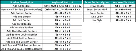 Apply bottom border alt + h, b, l: After that, press alt → h → b → a. Highlight area where you want to add a border. To apply a top border to. Web to apply borders to the outside of a selected range: Web steps to apply border using keyboard shortcut first, select the cell, range of cells, or the complete data in the spreadsheet using “ctrl +a” to select the cells,. Ctrl + shift + & mac shortcut: Apply right border alt + h, b, t: Web other useful shortcut keys move one cell up, down, left, or right in a worksheet. Web alt + h + b + t shortcut keys to apply other border styles in excel below are some of the common keyboard shortcuts that you can use to apply different styles of borders to the selected cells: Ctrl+arrow key moves to the edge of the current data region in a worksheet.