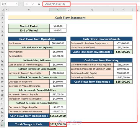 Cash Flow Statement Template for Excel Statement of Cash Flows