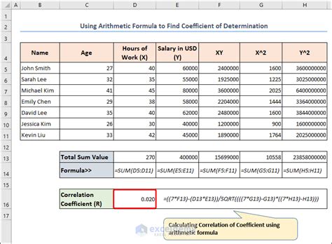 Coefficient of Determination Formula Calculation with Excel Template
