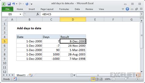 Date Formula Excel Add Days. You can enter a negative number to subtract days from your start date, and a positive number to add to your date. Web one of the many ways to add days to a date in excel is to use a combination of the year, month, and day functions.