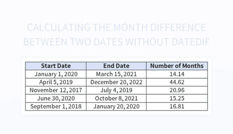 Difference Between Two Dates In Excel Without Datedif. I'm using a 2010 version of excel (don't judge!) and it does not have dateif.