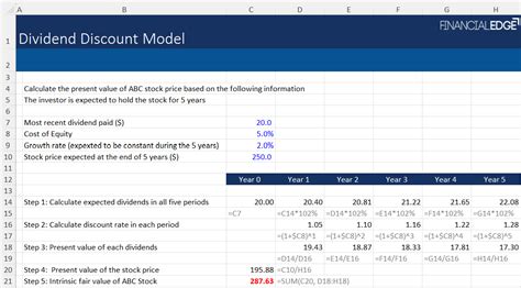 D1 = expected dividend in. Web the dividend discount model formula determines the stock price based on the probable dividends one will pay. Web the basic steps of a dividend discount model. Web the dividend discount model works off the idea that the fair value of an asset is the sum of its future cash flows discounted back to fair value with an appropriate discount rate. Bank and insurance dividend discount models are more complicated (you can see a sample here) and require more industry knowledge, so we’ll focus on. Web the gordon growth model (ggm), or the dividend discount model (ddm), is a model used to calculate the intrinsic value of a stock based on the present value of future dividends that grow. Web dividend discount model formula (ddm) the formula to calculate the implied stock price under the dividend discount model (ddm) is as follows. It helps to evaluate a company based on the concept that the stock price is worth the.