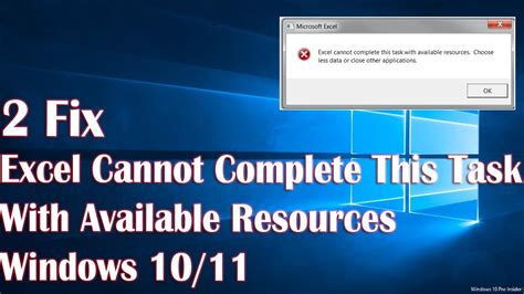Excel Cannot Complete This Task With Available Resources. Web when you work with a microsoft excel file, you receive one of the following messages: