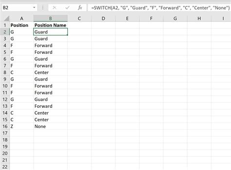 You can use the switch function. A popular use for the if function is creating nested formulas that. Web the switch function vs. You can use the switch function. Web excel case statements can be handled with either switch function or nested if statements. Nested if in excel with use cases the excel switch function, as well as if, helps specify a series of conditions. Web this particular function looks at cell a2 and returns the following value: “guard” if cell a2 contains “g” “forward” if cell a2 contains “f” “center” if cell a2. Web the switch function evaluates one value (called the expression) against a list of values, and returns the result corresponding to the first matching value. The switch function compares one value against a list of values and returns a result that corresponds to the first match found.