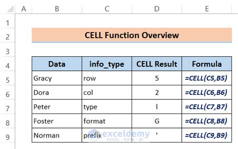 Color, filename, contents, format, row, etc. The type of information to be returned is specified as info_type. The cell function in excel returns various information about a cell such as cell contents, formatting, location, etc. The excel cell function returns information about a cell in a worksheet. Web cell function overview. Web the cell function is an excel information function that will extract information about a cell’s location, contents, or formatting. The cell function returns information about a cell. To use the cell excel worksheet. Web the cell function returns information about the formatting, location, or contents of a cell. For example, if you want to verify that a cell contains a numeric value instead of text.