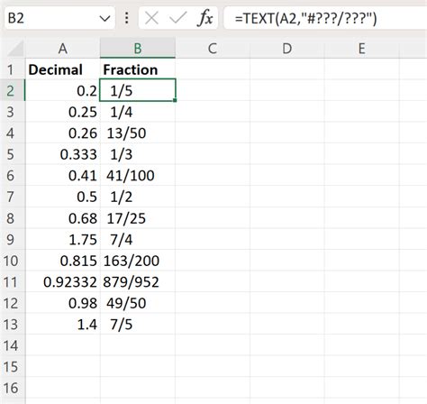 Web how to convert a decimal to a fraction in excel. You can use the following formula to convert a fraction to a decimal. Web to convert the values to fractions, first select the range of cells you want to convert (here, b2:b7).