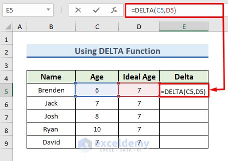 Excel Delta Formula. The excel delta function compares two numeric values, and checks if they are equal. If the two numbers are.