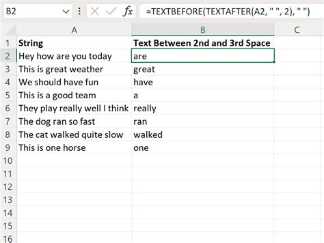 Excel Extract Text Between Second And Third Space. Web it increases each space to 50 spaces, then uses the mid function to begin extracting at character 100 (where the. Web recall the formula that we used to extract the text between the second and third space in cell a2:.