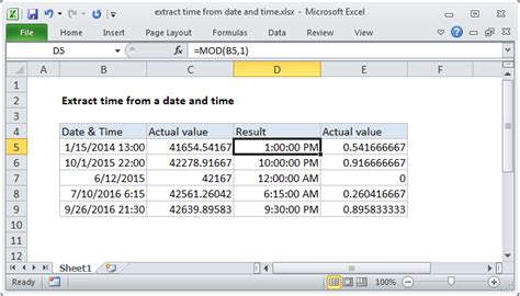 Extract time from date & time in Excel YouTube