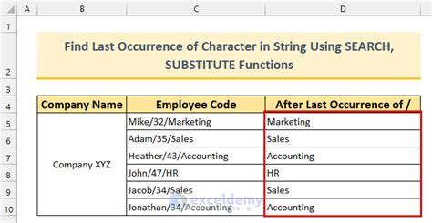 Excel Find Last Occurrence In String. Using find & substitute functions in excel to find position of last occurrence of character. Web when you have the position of the last occurrence, you can simply extract anything on the right of it using the right function.