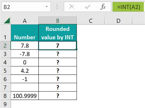 Excel Function Integer. Rounds a number down, to the nearest integer or to the nearest multiple of significance.