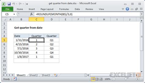 Excel Get Quarter From Date. Q1) =q &int ( (month (a1)+2)/3) formula 2: In the example shown, the formula in cell c5 is: