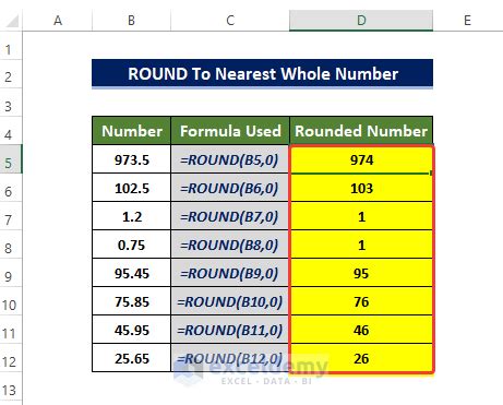 Excel Round To The Nearest. Rounding numbers has plenty of useful applications! For example, if you’re tracking your bills in excel, you can round the values to integer numbers to see a simpler.