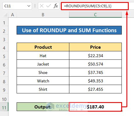 Excel Roundup Sum. And then click fx icon, find out the round. Select the cell that you want to use the sum, like c6 in my case.