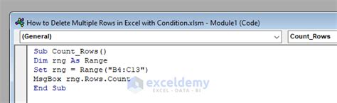 Press alt+f11 on your keyboard. Use vba code to count rows of a specific range. Web you can assign the return value to a variable like this: All you need to do is specify the range for which you want to count the rows and. Web it’s pretty easy to count rows in excel using vba.
