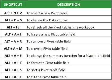 Pivot table excel shortcut keys architectlew