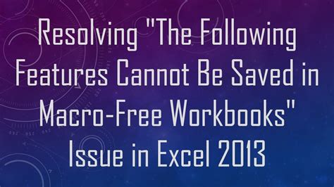 Excel The Following Features Cannot Be Saved. I have a excel template with a macro in it (to set a static date) i want to. Web by default, the.save method will save the file as.xls or.xlsx (dependant on your version of excel), you need to.