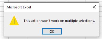 How To Solve Excel Error This Action Won’t Work On Multiple Selections