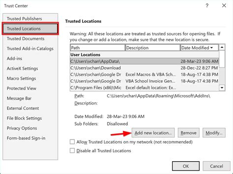 Excel Trusted Locations. Web i have tried adding the administrative template files to the group policy editor (since they are not present. Web 6 rows you can view the list of trusted locations by going to file > options > trust center > trust.