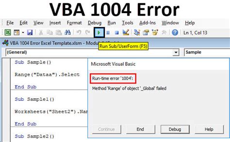 Excel Vba Error 1004. Web edit your function/vba code and run your program in debug mode to identify the line which is causing it.