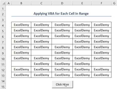 Excel Vba For Each Cell In Range. Sub looprange () dim rcell as range dim rrng as range set rrng = sheet1.range. Sub roundtozero2 () for each c in worksheets (sheet1).range (a1:d10).cells if abs (c.value) < 0.01.