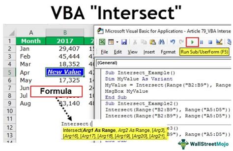 If the ranges don't intersect, the example displays a. Let’s get started with the first example. Web examples of excel vba intersect. Let us show you a variety of vba intersect function examples. Here is one common way to use. Web the following example selects the intersection of two named ranges, rg1 and rg2, on sheet1. Clear content of the intersection cell: To clear the content of the intersection cell of the supplied range, use the code below. Web you can use the intersect method in vba to return a range that represents the intersection of two specific ranges. The common point or area created after.