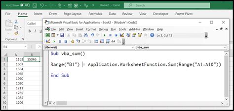 Web learn how to calculate the sum of values in a range using vba with basic syntax and examples. Web range (a1).formula = =sum ( & range (cells (2, 1), cells (3, 2)).address (false, false) & ) 'the two false after.