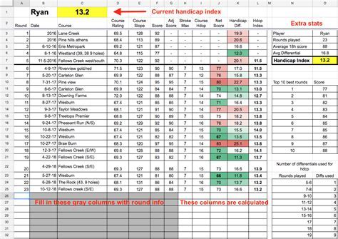 Free Excel Golf Handicap Calculator StepByStep Guide Sports Ruby