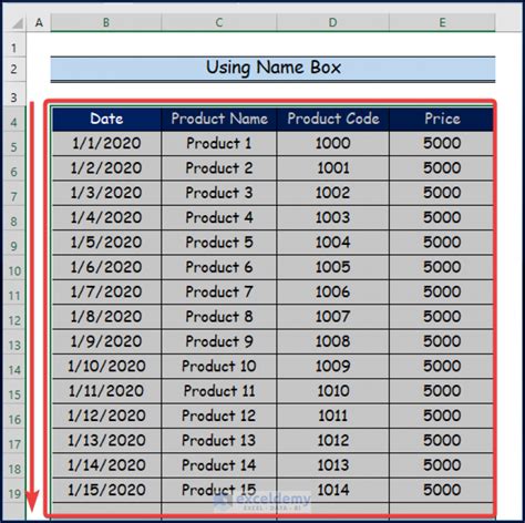 Web here the steps to select multiple contiguous rows by dragging: Quickly select large range of cells with. It displays the reference of the active cell and can also be used to create named ranges. Now, i will select the cell range from b4 to e1000. With the left mouse button still pressed, drag down the row headers till you reach the last row. There is a name box at the left of the formula bar. We can also use it to quickly. Web select 500 rows/cells using the name box. Type the cell reference, such as a1:bb1000 into the name box, see screenshot: Then press enter key, and your specified cell range is selected at once.