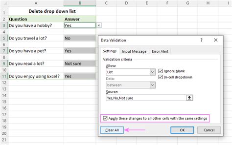 How To Remove A Dropdown In Excel. By using the clear button. By using the data validation dialog box.
