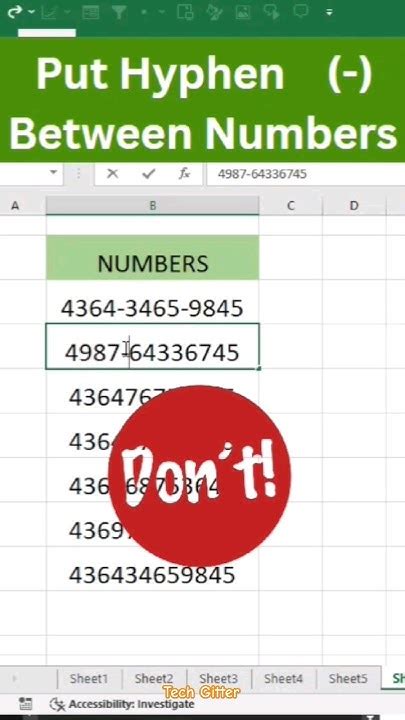 Insert Hyphen In Excel Between Numbers. Select the cells you want to insert the dashes into. Open a new workbook or worksheet.