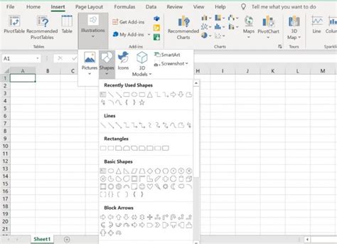 Inserting Shapes In Excel. Click on the insert tab in the excel ribbon. Choose the desired shape from.