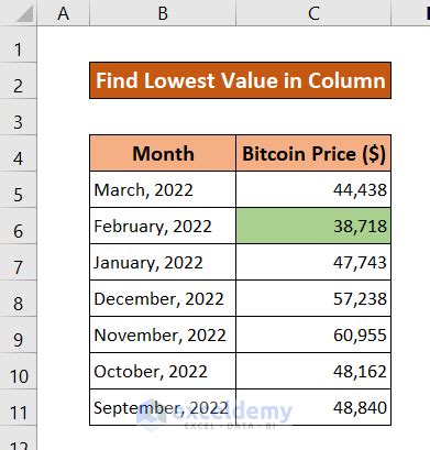 Lowest Value Excel. Min(number1, [number2],.) the min function syntax has the following. Web returns the smallest number in a set of values.