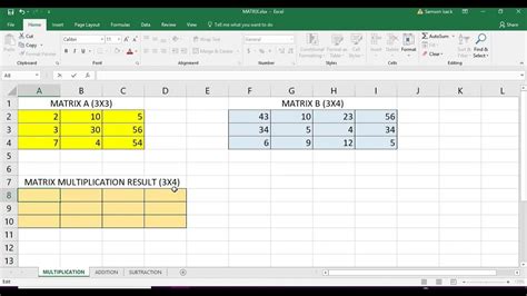 Multiply Matrices Excel. The result is an array with the same number of rows as array1 and the same number of columns as array2. The syntax for the function is:
