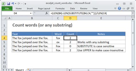 Web excel does not have a proper word count tool or formula, but there is one thing we can count, and that is characters, as we've learned above. This post will show you how you can count how many words are in your. To count the total words in a cell, you can use a formula based on the textsplit and counta functions, with help from the trim function. Specifically, we are going to count the number of spaces. In the example shown, the. Web excel does not have a proper word count tool or formula, but there is one thing we can count, and that is characters, as we've learned above. But there are a few clever ways to get the result you need. Web to count how many times a certain word, text, or substring appears in a cell, use the following formula: