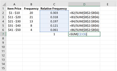 Enter the formula =frequency/total, where. Web now that you have the frequency of your value and the total number of data points, you can calculate the. Web select the cell where you want to display the relative frequency of a specific data point.