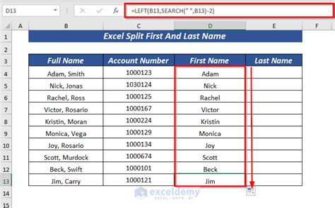 Web learn how to split the first and last names from a full name in excel using text functions, filters, and flash fill.