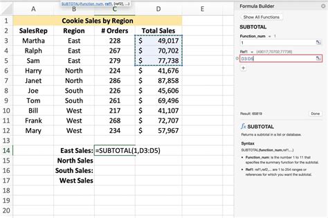 Web =subtotal(9,a2:a5) the sum of the subtotal of the cells a2:a5, using 9 as the first argument.