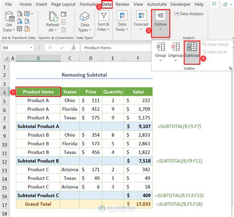 Unlocking SUBTOTAL Feature in Excel Excel Unlocked