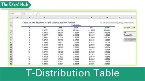 T Table In Excel. Web the t critical value can be found by using a t distribution table or by using statistical software. Whenever your sample size if below 30 to 40, making use of these functions over a z table function is recommended.