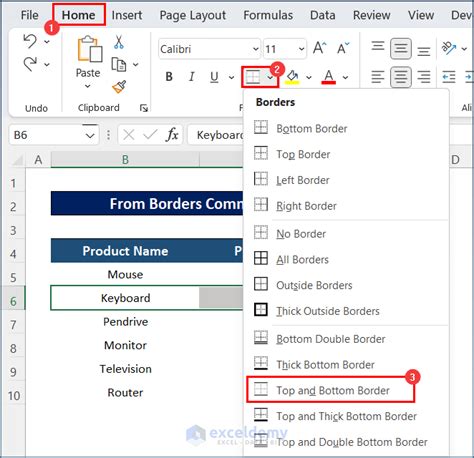 ⌘ + ⌥ + _ all borders shortcut to add all borders to a range: Web if you want to print the same border on cells that are separated by a page break, but the border appears on only one page, you can apply an inside border. Highlight the range where you want to apply all borders. This way, you can print a border at the bottom of the last row. Web top and bottom border in excel: In this method, i am going to use the borders command to add the. On the home tab, in the font group, click the down arrow next to the borders button, and you will see a list of the most. You can also select multiple cells in different columns or rows by holding down. ⌘ + ⌥ + _ all borders shortcut to add all borders to a range: Alt+h>b>a other borders shortcuts to add. Insert top and bottom border from borders command.