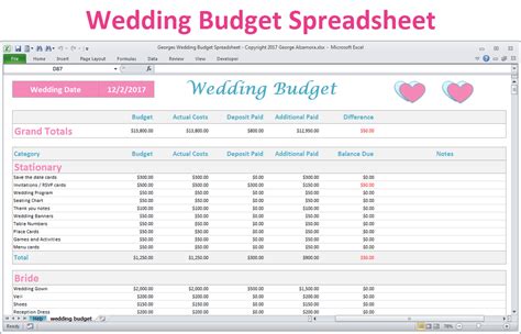 Example Wedding Budget Spreadsheet within Easy Wedding Budget Excel