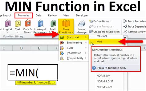 What Is The Min Function In Excel. It is used to find the minimum value from a given set of data/arrays. Min (number1, [number2],.) number1, [number2],.